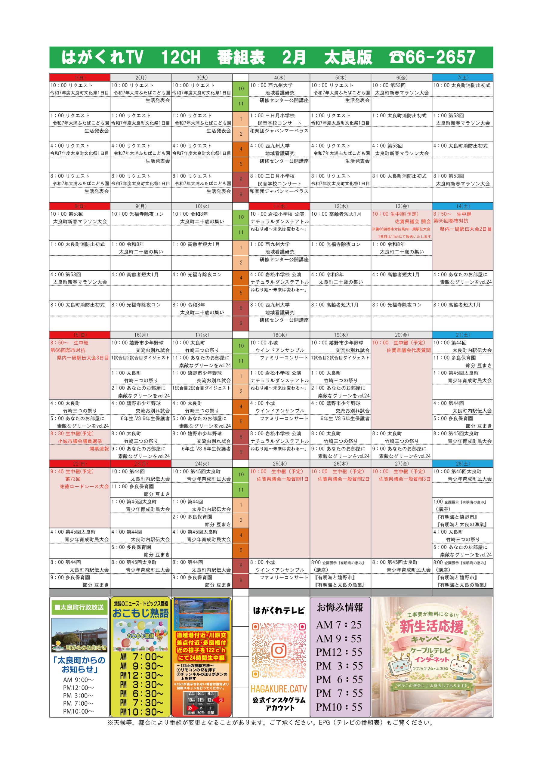 太良町エリア 放送プログラム